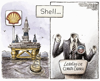 And yet Mr. Obama — acting on his own, since these are all executive actions requiring nothing from Congress — has opened huge swaths of the Powder River basin to new coal mining. He’s still studying whether to approve the Keystone XL pipeline, though the country’s leading climate scientists have all told him it would be a disaster. And now he’s given Shell the green light, meaning that, as with Keystone, it will be up to the environmental movement to block the plan (“kayaktivists” plan to gather this weekend in Seattle’s harbor, trying to prevent Shell from basing its Arctic rigs there).